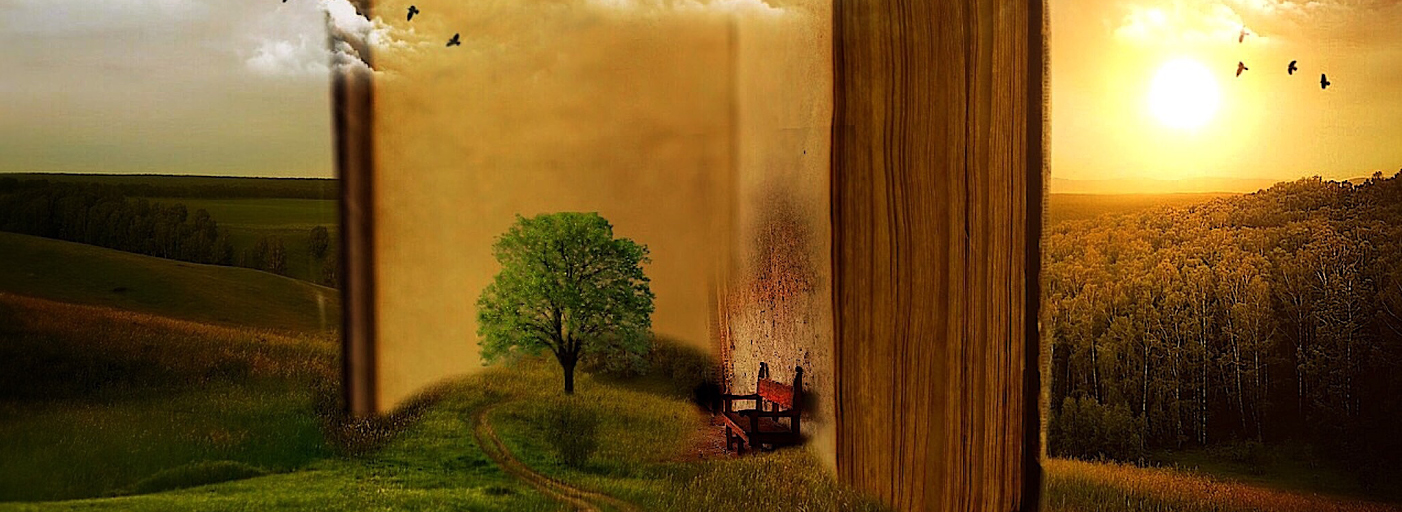Vue sur l’imaginaire qui ne nous quitte jamais. Un paysage qui surgit de vos rêves, un livre gigantesque de pages encore vierges et un fautueil magique qui vous invite à vous détendre et à vous laisser emporter. Voici votre billet pour le voyage: