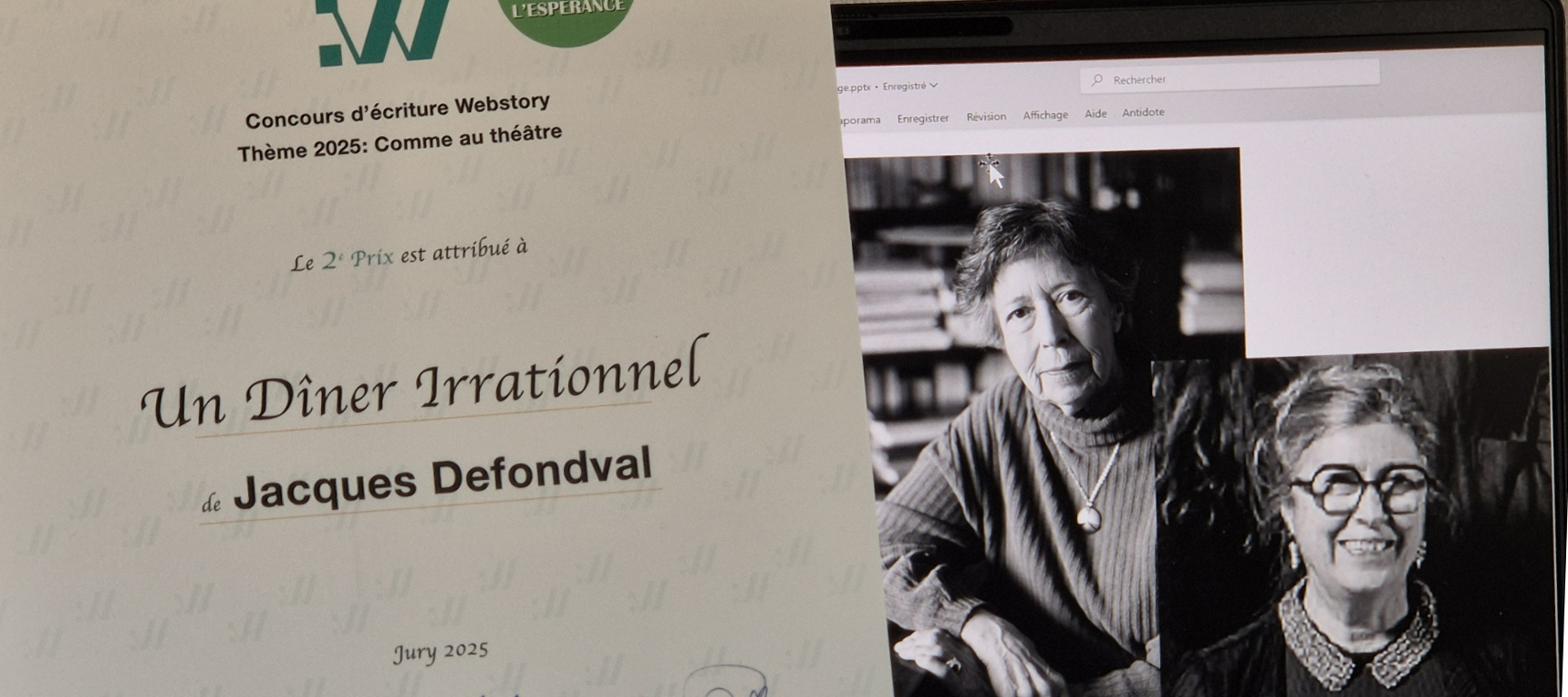 La suite vous la découvrirez en lisant «Un dîner irrationnel» signé Jacques Defondval, dont le jury a apprécié tout particulièrement le lien subtil et parfois déconcertant entre la réalité ressentie et la réalité représentée, cette danse fragile entre le théâtre et la vie, qui était au cœur du thème de cette année.