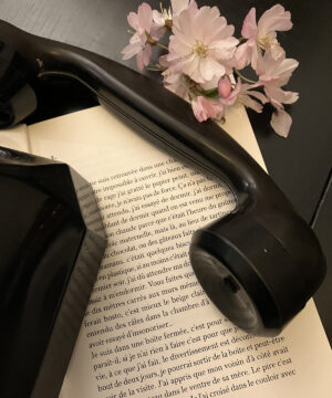 Il y a tout ce blanc ou plutôt beige clair et pourtant je vois du noir. HDT, quel vilain mot. Est-ce vraiment une solution? Peut-être, mais je ne le saurais pas avant d’avoir lu la suite. C’est le printemps et tout est triste. Les cerises de la page 12, je les retrouve à la page 18. Un point d’ancrage rassurant. Il représente la vie voluptueuse. Je suis sortie piquer des fleurs du cerisier japonais… qui ne fait pas de cerises. Je crois que c’est important.