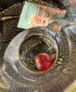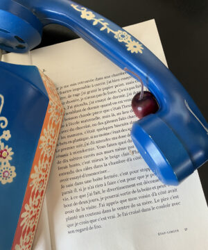 Il y a davantage de cerises dans ces pages qu’en cette saison. À force de m’entendre dire au marché que ce n’est vraiment pas la saison, une vendeuse m’a dit «C’est quand on ne cherche plus qu’on trouve». Ce qui est arrivé aujourd’hui. Sur le stand d’un brocanteur, une femme. Elle m’a prêté sa déco (une cerise en plastique) pour une semaine. Tout le monde s’y met.