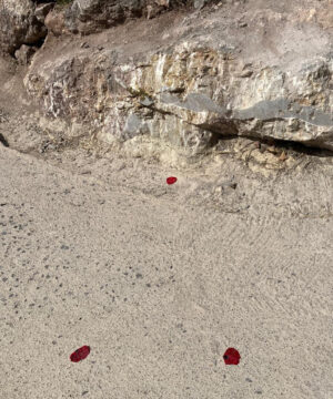 Quelques points rouges contrastant avec le bleu du ciel