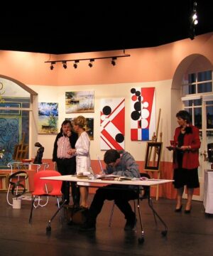 La pièce se situe dans les années 90 début 2000. Il n’y a pas encore d’ordinateur et une très petite minorité de la population possède un téléphone portable. L’action se déroule le jour du vernissage des « œuvres » abstraites du peintre Antoine.
