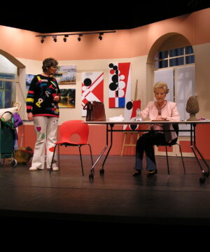 BRIGITTE Eh bien réponds! (Comme Séverine hésite, elle décroche) Galerie L’Art de Vivre, bonjour… Oui… Non… Oui c’est moi… Comm…